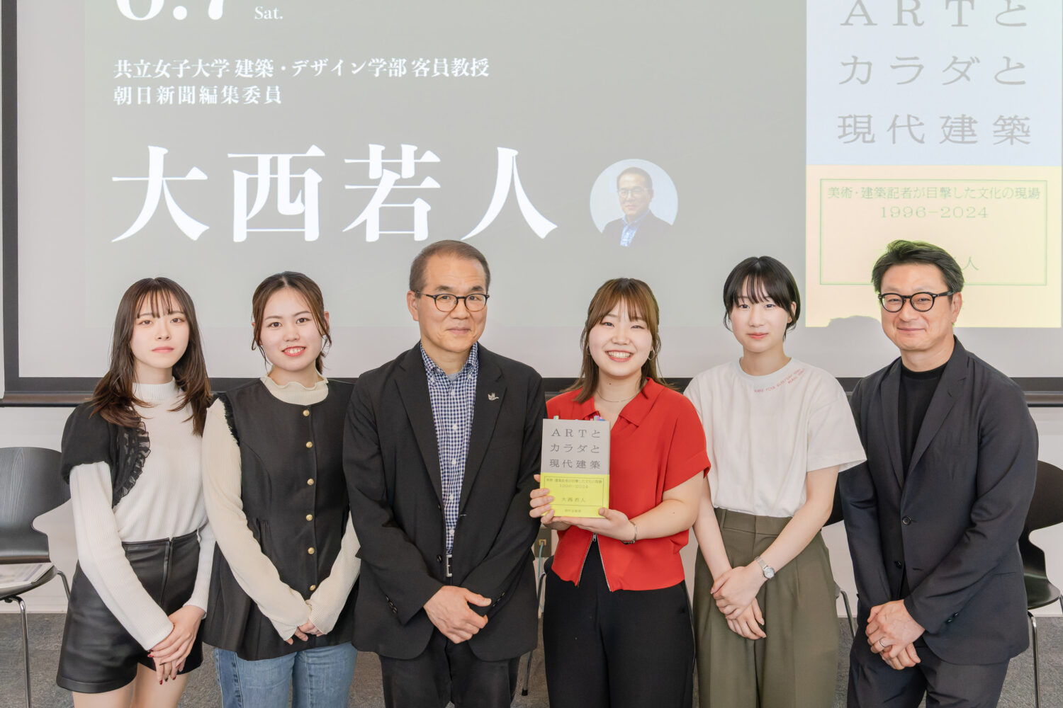 大西先生は、アート・デザイン・建築を長年にわたり横断的に取材・論評されており、建築とデザインの融合を掲げる本学部にとって、まさに最適な講師をお迎えする機会となりました。先生が昨年刊行された『ARTとカラダと現代建築』を拝読しましたが、ジャンルを超えた幅広い取材の蓄積に驚かされると同時に、「カラダ=身体性」に早くから着目し、その視点からアートや建築を論評されていることに強く感銘を受けました。VR/ARなどデジタル技術が隆盛する現代において、むしろ物理的な「生の身体」の重要性が高まっているのではないかと感じさせられ、過去の取材記録であっても新鮮さを失わないのはそのためだと考えます。