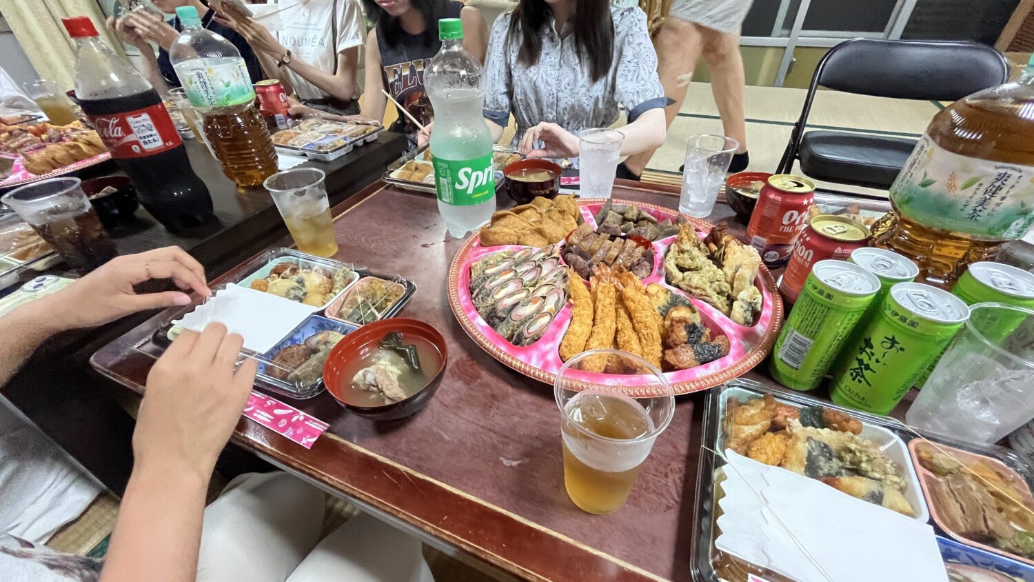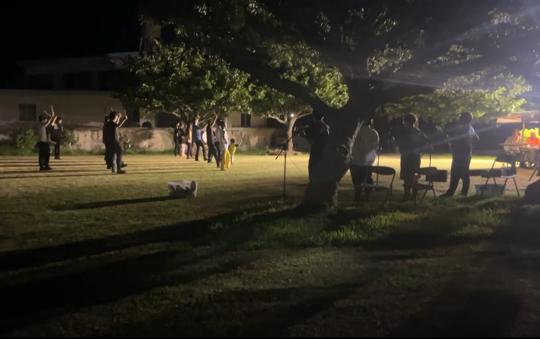 旧盆の中日(5日)には、島の各集落の青年会の方々が島中を舞いながら廻る「エイサー」が開催されました。合宿2日目の夜、宿の方から「近くの公園でエイサーの練習があるから、観に行ってみるといいよ」と教えていただき、その様子を観にいきました。三線の演奏に合わせ太鼓を叩きながら舞う姿は美しく、沖縄文化を肌で感じられた時間でした。