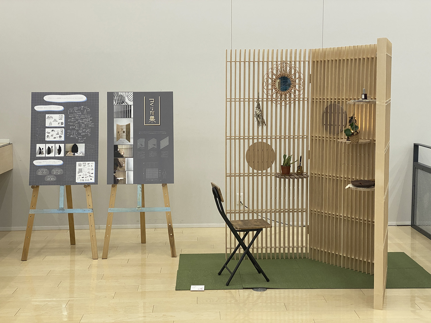小林さんの卒業制作は「つくりだ巣」というプライベート空間を自在に作り出すことができる木製のパーティションを制作。デザインコースを卒業後は、住宅に関わる内装の設計や管理に従事していましたが、さらに高みを目指したいということから、建築士の免許取得を目指し、現在は建築の専門学校に通っています。