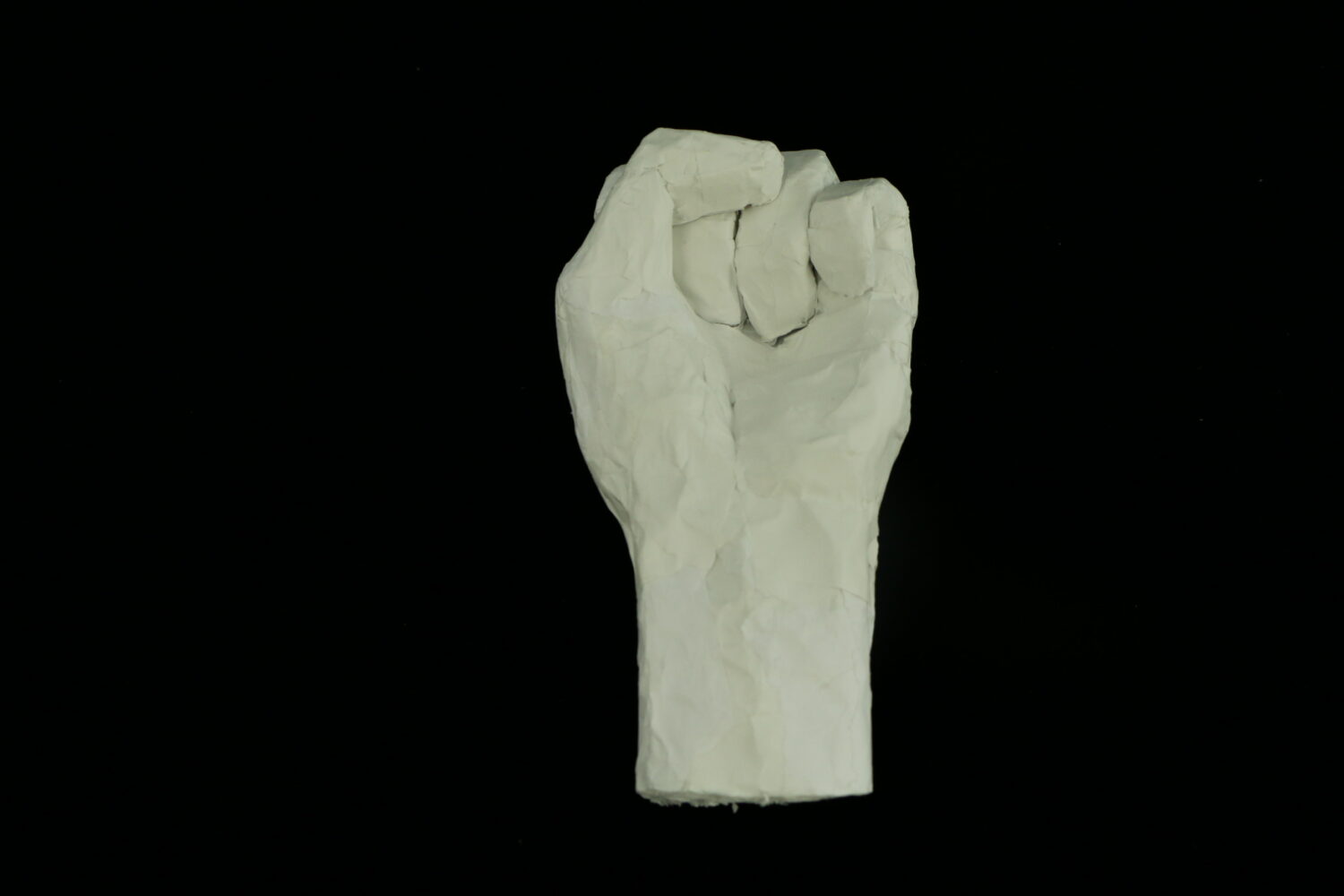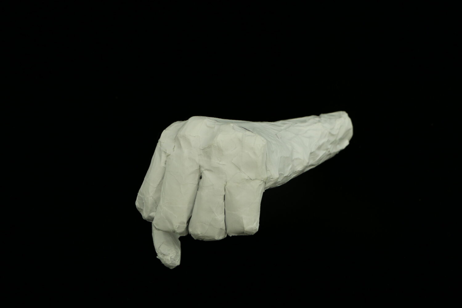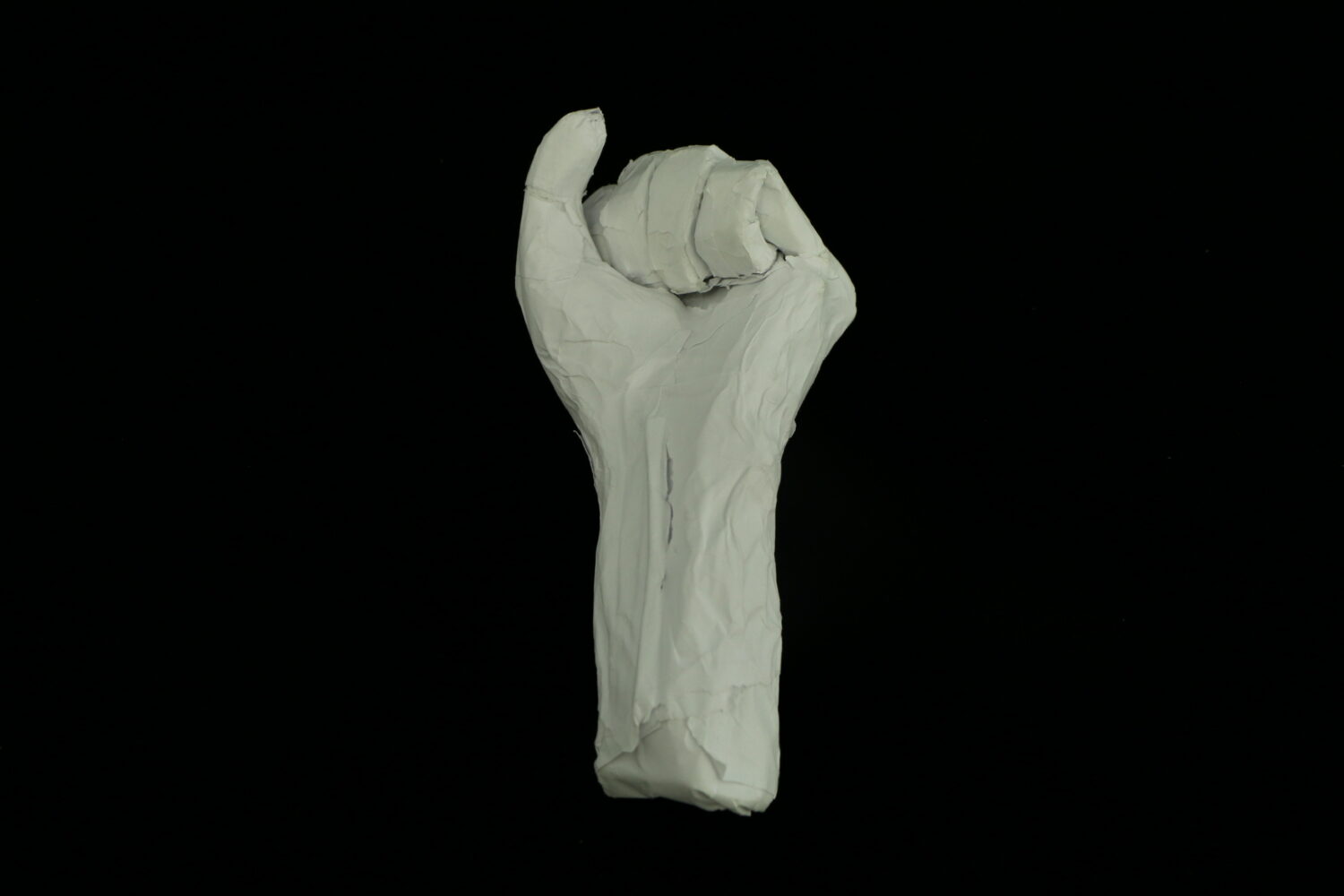 本課題は、手を観察し、対象とは異なる素材の「紙」でアクチュアル(実存)に再現する 課題です。
