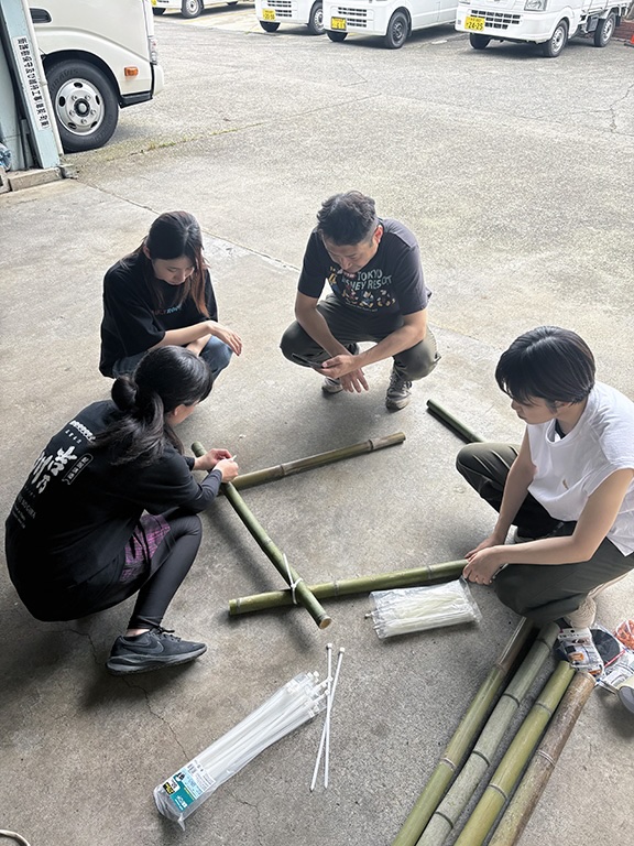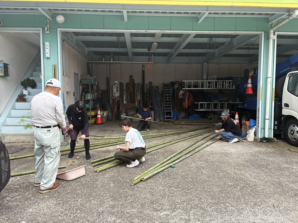 萩生田先生パワーでお知り合いの方から竹を譲り受け、自分たちで必要な長さ分だけ切る作業を行いました。