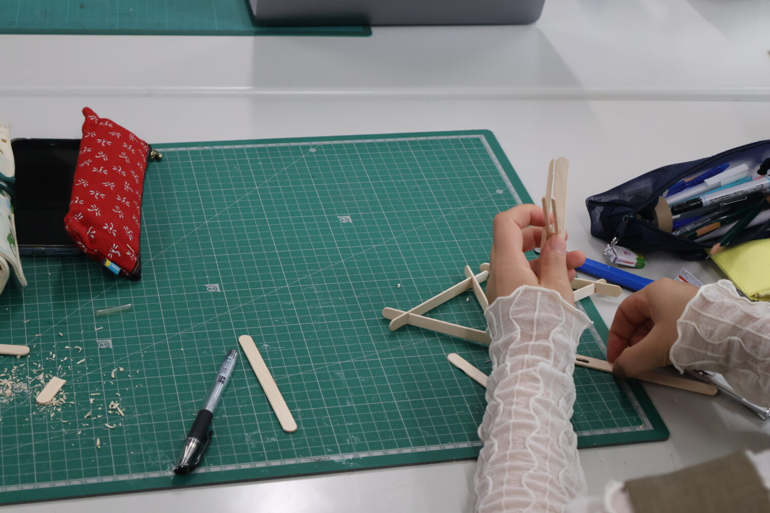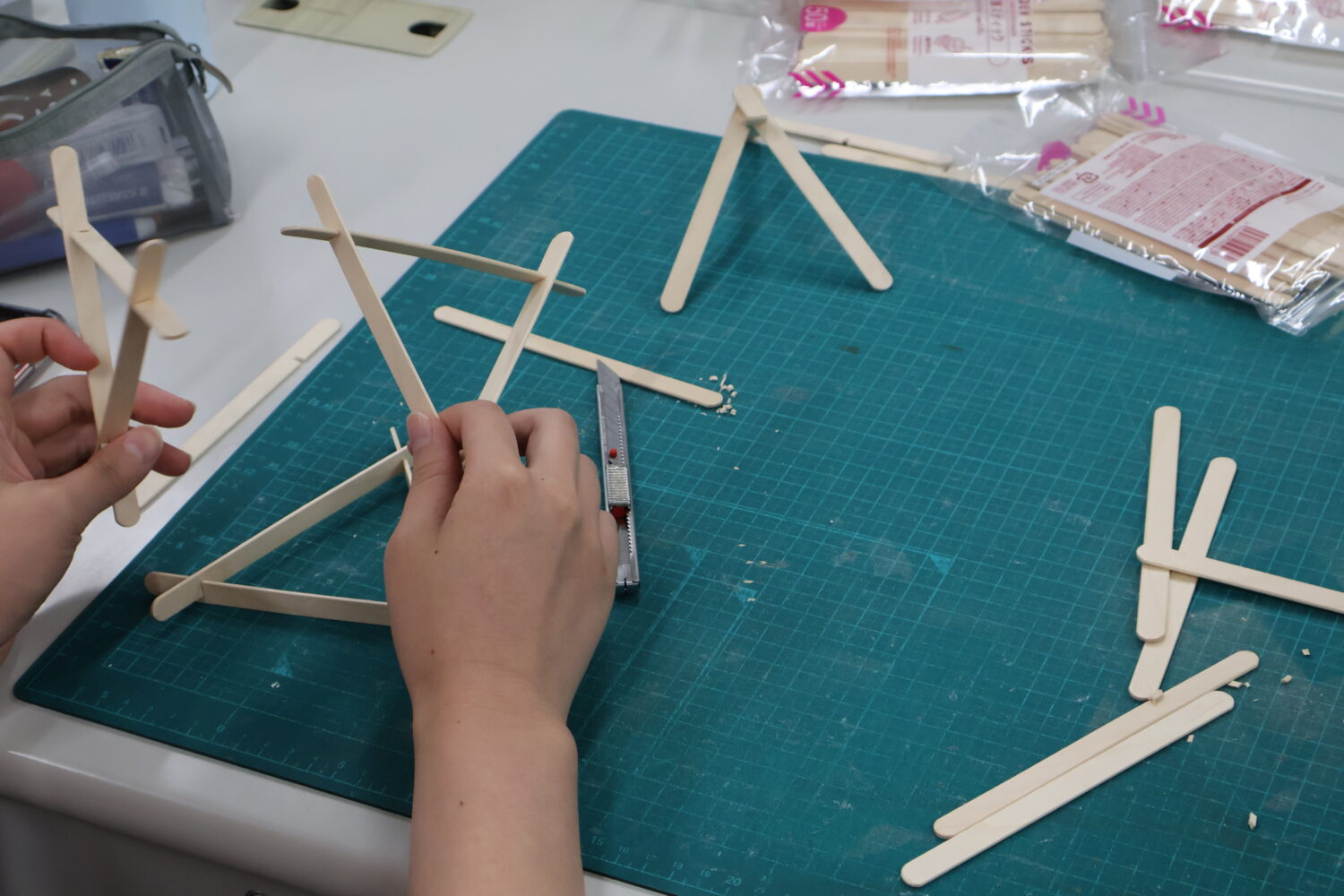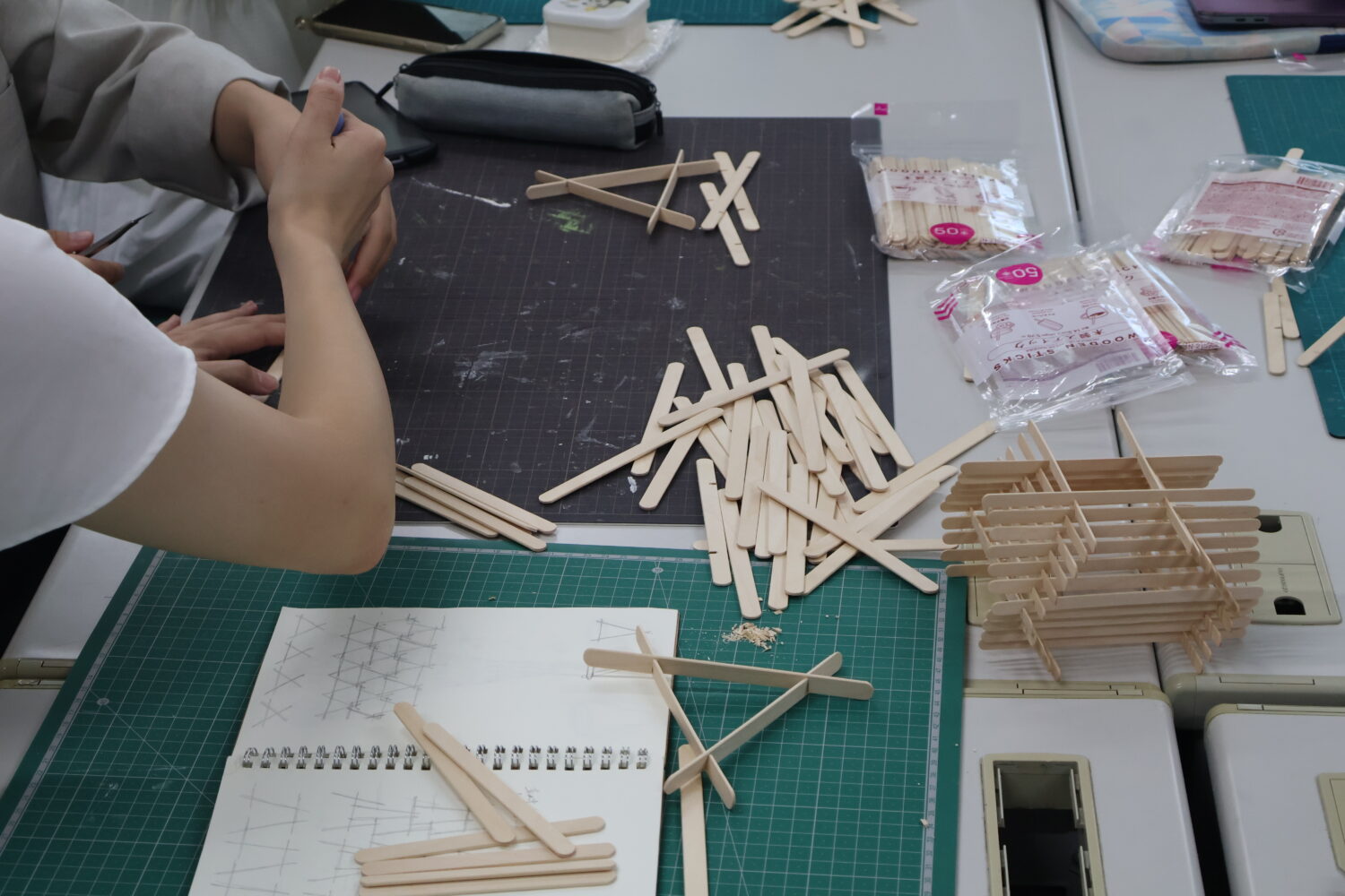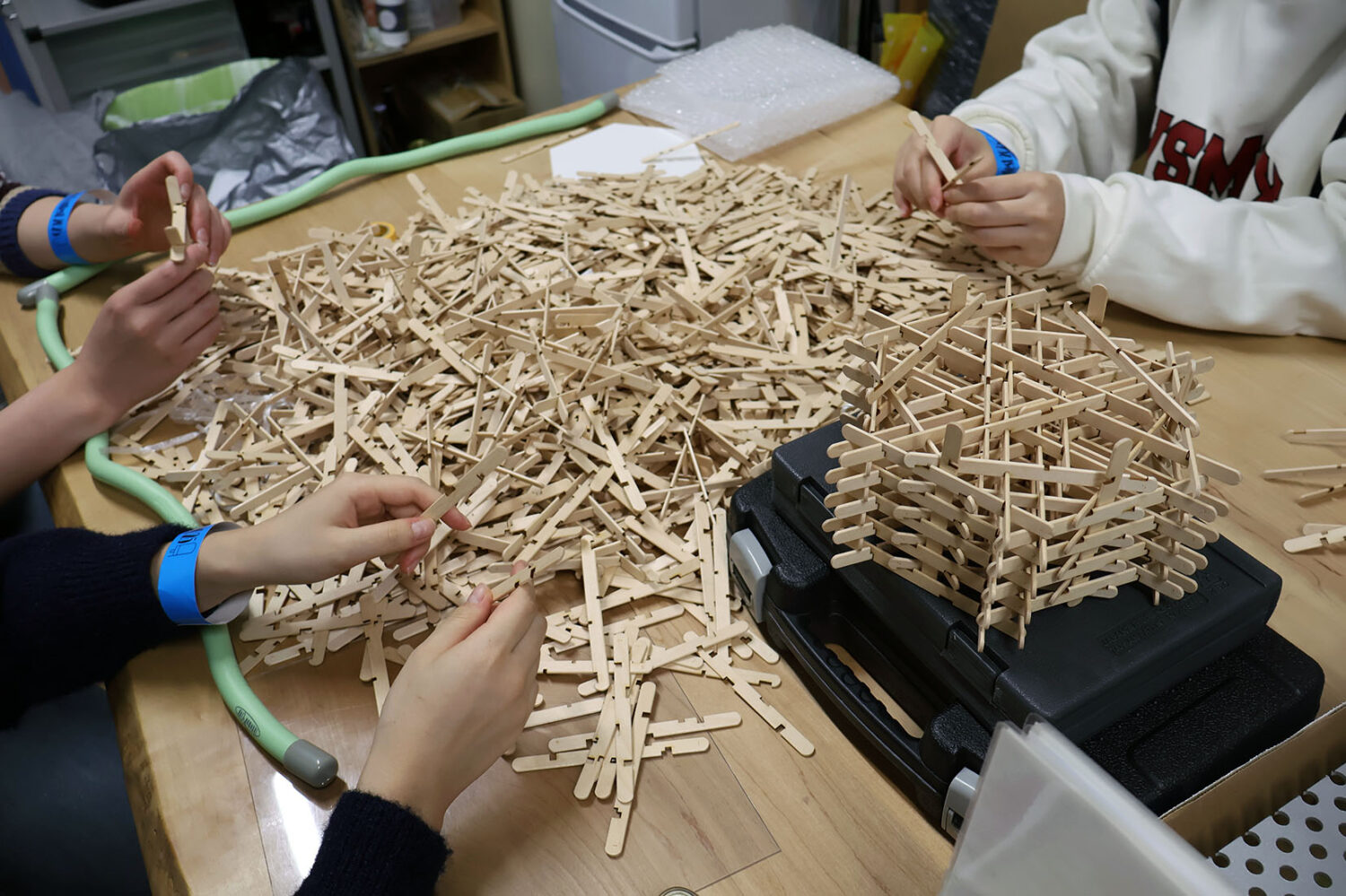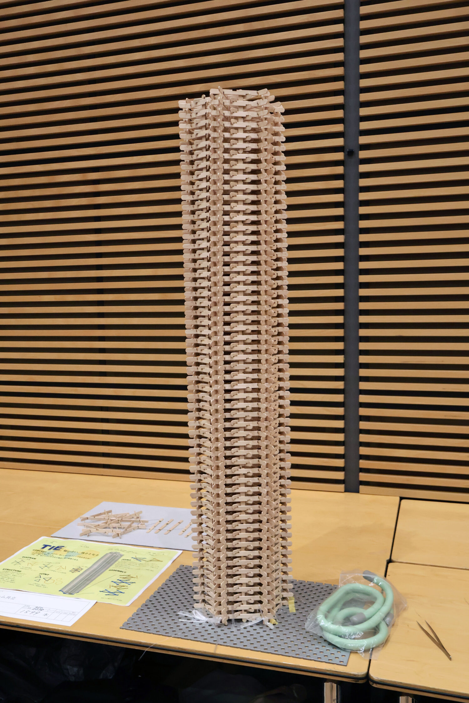 幅10mm長さ114mmのアイス棒を接着剤なしで組み立てていき、高さ1000mmを超えるタワーを作らないといけません。
