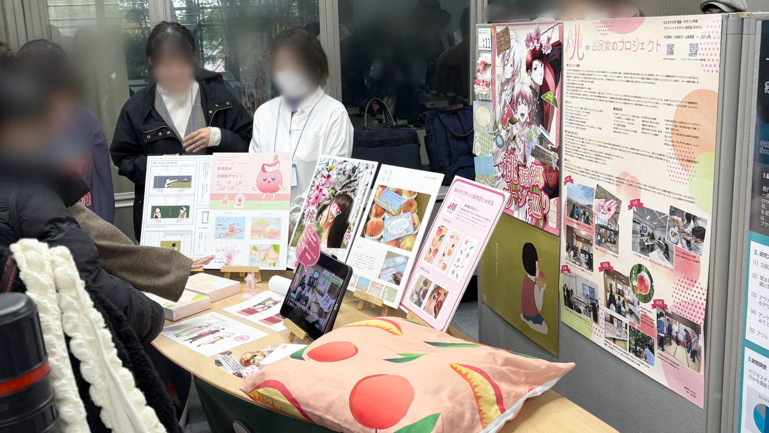 キャラクターデザイン、駅広告、メッセージカード、つまみ細工など、学生それぞれの個性が表れた作品に多くの方が興味を示し、実際に手に取って鑑賞していただく場面も多く見られました。